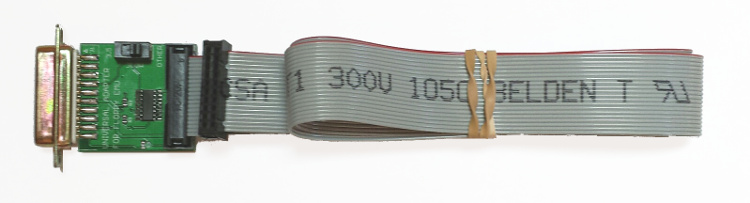 - Connects to external (DB-19 D-SUB) or internal (20 pin ribbon header) floppy drive connector